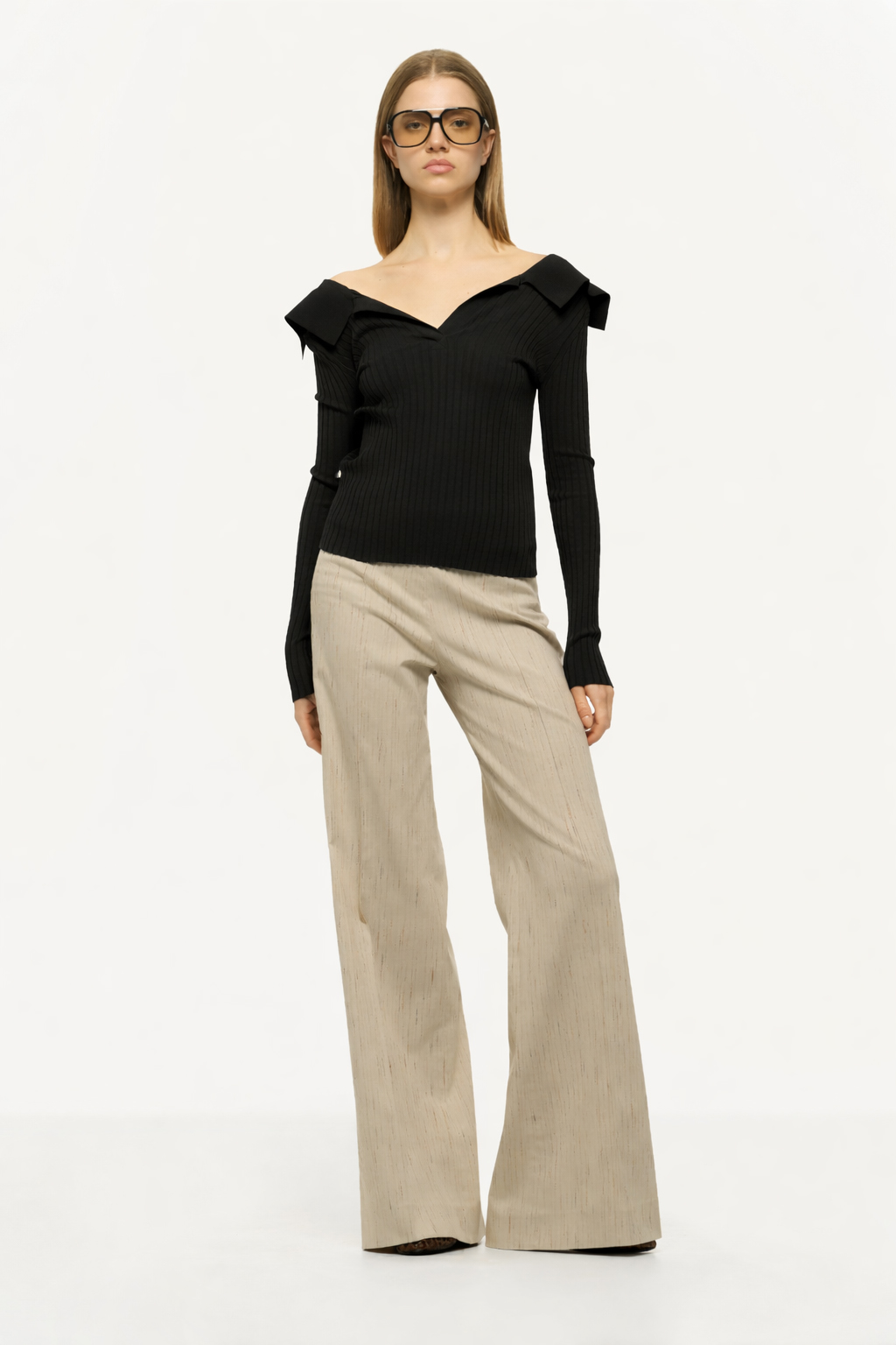 Polo in viscosa a coste, lavorata interamente a maglia, con bottoni sul davanti e sul retro.