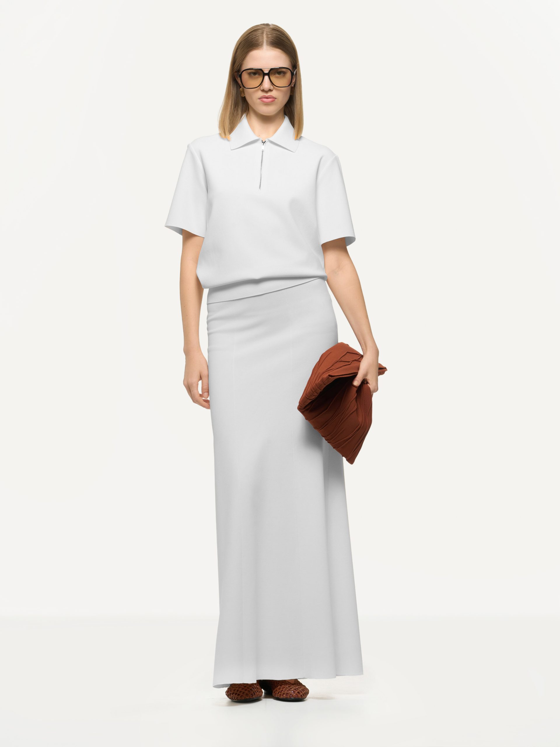 Polo a maniche corte in viscosa realizzata interamente in macchina, con zip frontale e fit confortevole.