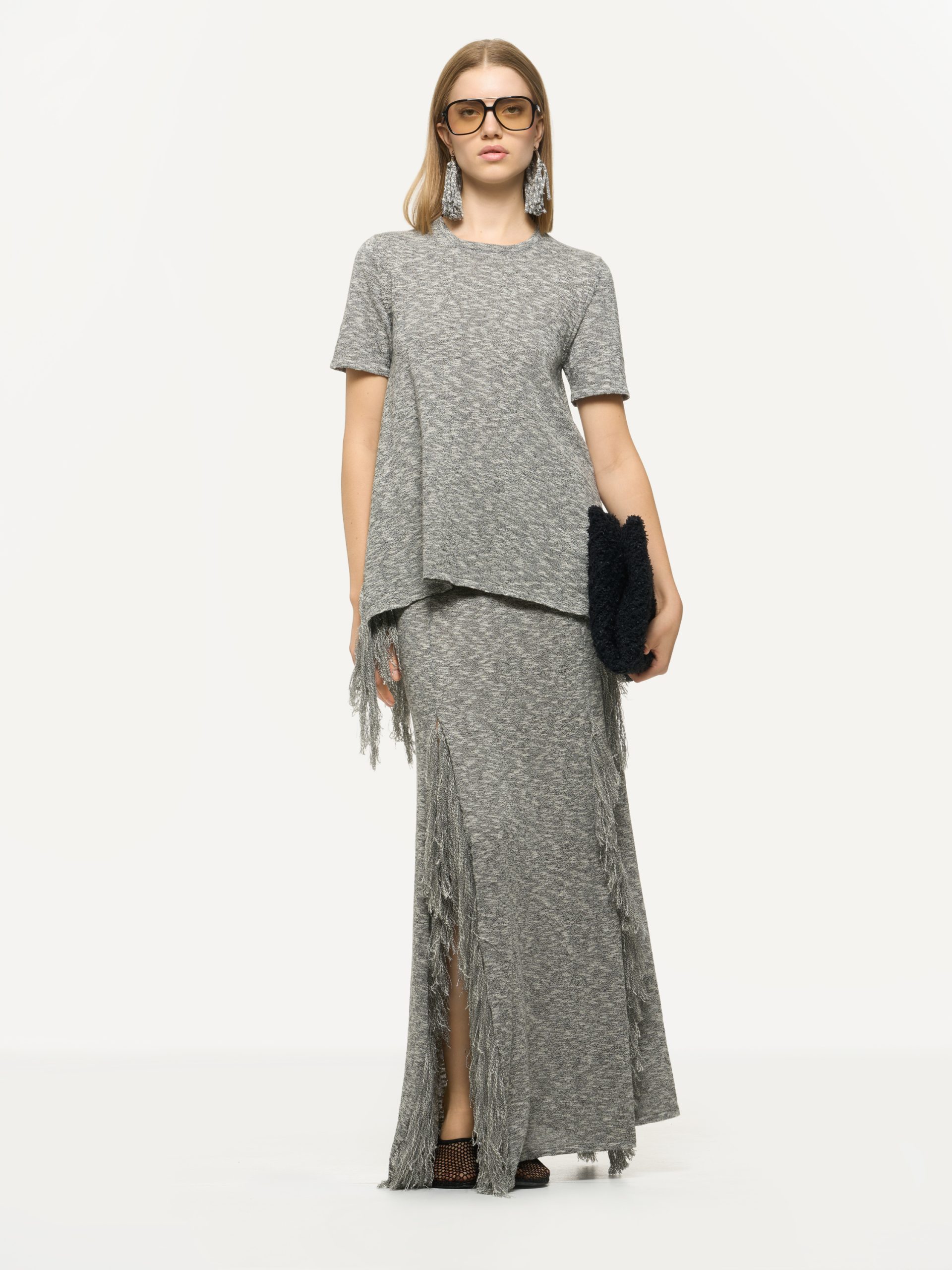 T-SHIRT CON FRANGE Nero Melange